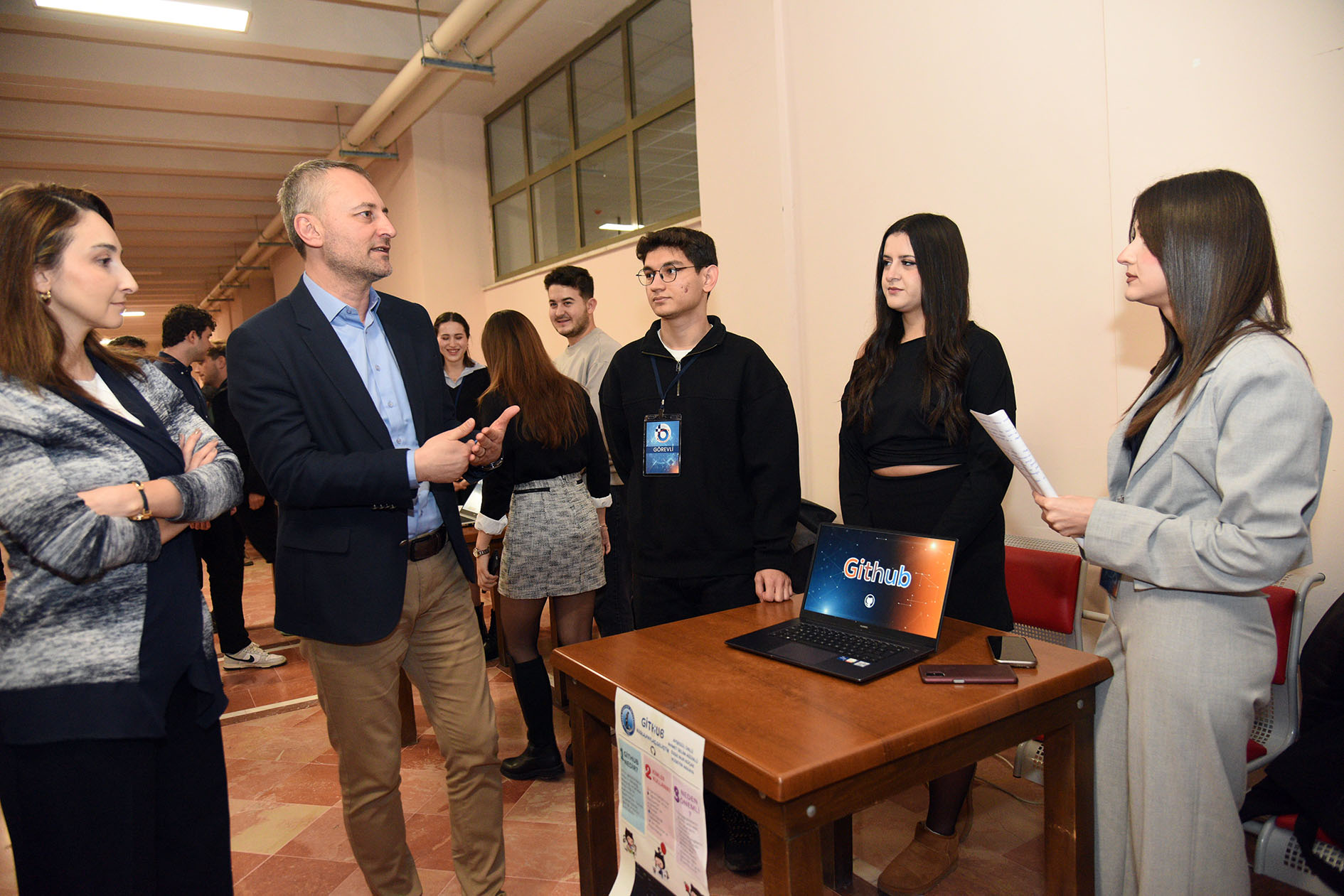 İİBF Dekanı Prof. Dr. Gökhan Demirtaş ise konuşmasında, öğrencilerin eğitim sürecinde sadece bilgi alan taraf olmaktan çıkıp, bilgiyi aktaran ve sunan bir konuma geçmelerinin önemine değindi. Etkinliğin öğrenci odaklı yapısının, eğitim yöntemlerinin pratiğe dökülmesi açısından değerli bir örnek teşkil ettiğini belirten Prof. Dr. Demirtaş, “Bu etkinlik, öğrencilerin teknik bilgilerini paylaştığı bir platform olması açısından fakültemiz adına sevindirici bir gelişmedir” diye konuştu. Kendi kariyerinden ve bilişim sektöründeki tecrübelerinden örnekler veren Prof. Dr. Demirtaş, öğrencilere sektördeki fırsatları ve trendleri yakalamaları konusunda tavsiyelerde bulundu. Kamu yönetiminde bütünleşmiş yazılım sistemlerine duyulan ihtiyacın arttığını vurgulayan Demirtaş, “Kamuda karmaşık alanların yönetimi, yasal mevzuatların takibi ve kaynakların verimli kullanımı için bütünleşik bilgi yönetim sistemlerine ihtiyaç duyulmaktadır. Gelecekte hem yönetim süreçlerine hâkim hem de bilişim yetkinliğine sahip nitelikli insan kaynağının kamuda istihdamı kritik bir öneme sahip olacaktır. Bilişim sektörü zorlukları barındırsa da geniş iş imkanları sunan dinamik bir alandır” diye konuştu.